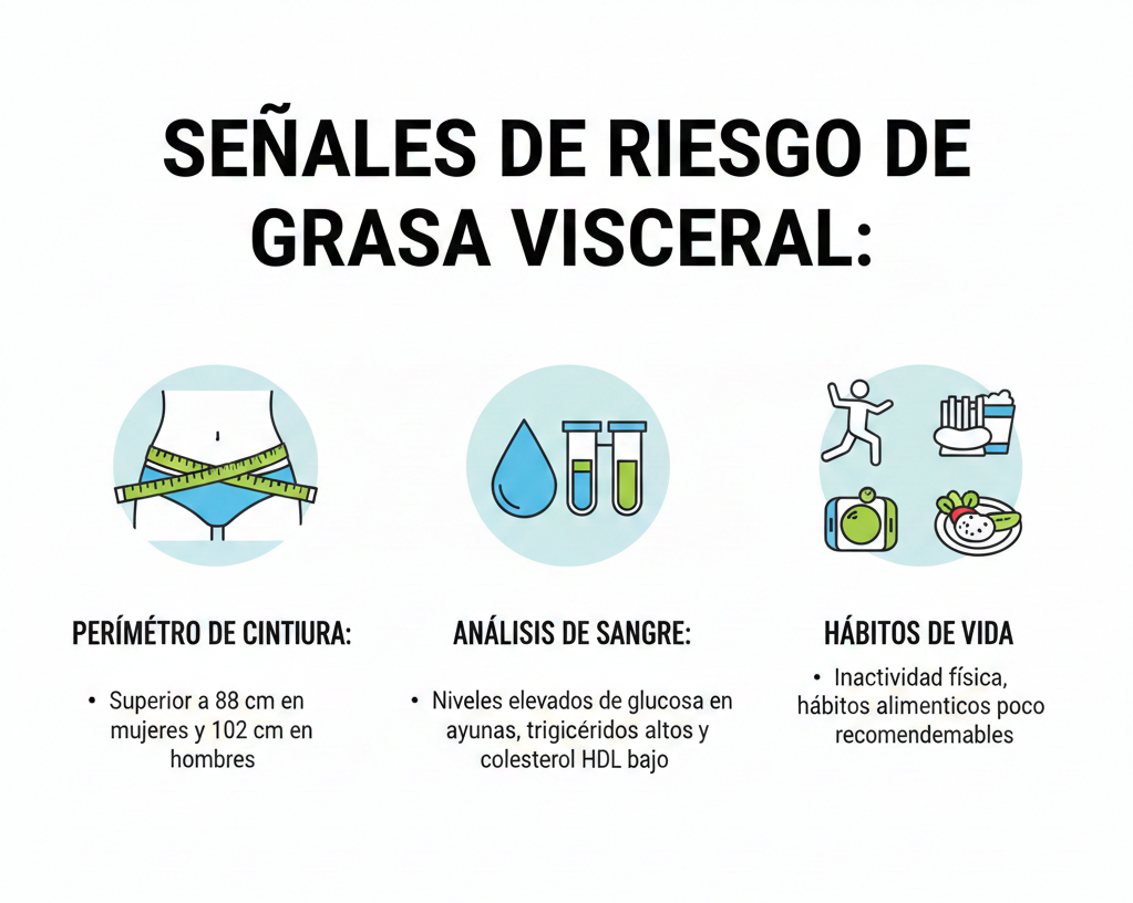 A diferencia de la grasa subcutánea (la de las «cartucheras» o «michelines»), la grasa visceral en exceso puede aumentar el riesgo de enfermedades metabólicas. Y lo más importante: no siempre es visible.